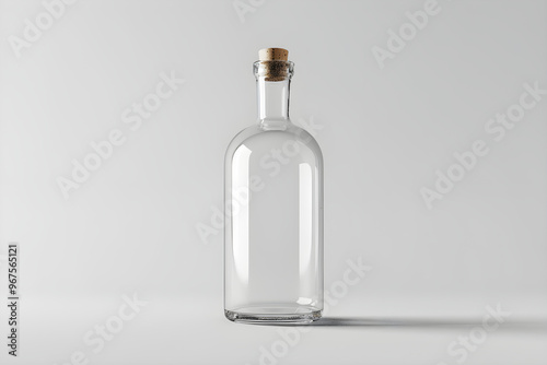White glass bottle for cognac or whiskey on a white background. Mock up for advertising, branding, product presentation with space for text