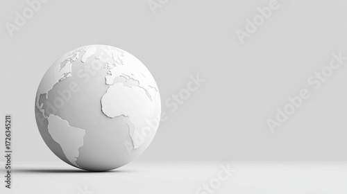 White globe with continents in relief on clean background