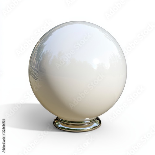White Glossy Sphere on Metallic Base 3D Render