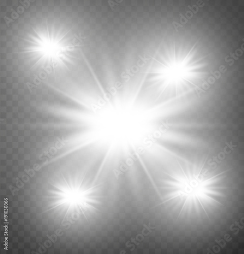White glowing light burst explosion with transparent effect. Vector illustration.