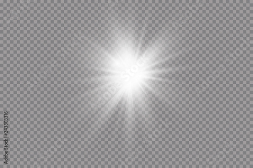 White glowing light explodes on a transparent background. with ray. Transparent shining sun, bright flash. The center of a bright flash.