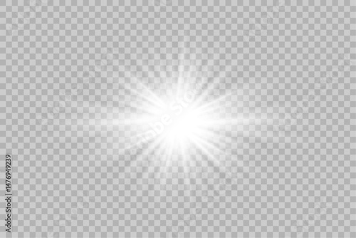 White glowing light explodes on a transparent background. with ray. Transparent shining sun.