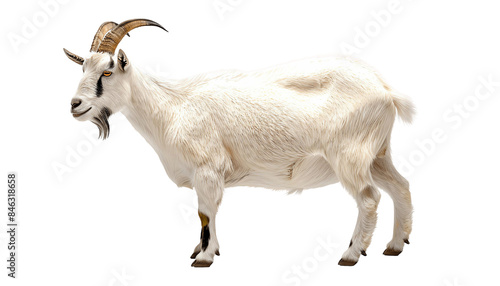 White goat standing with a side view., isolated on transparent background cutout.