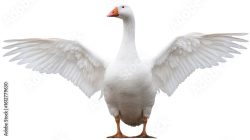 White goose isolated on transparent background with wings spread wide open