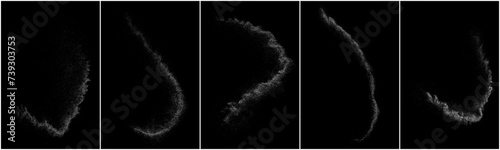 White grainy texture. Abstract dust overlay. Grain noise. White explosion on black background. Splash realistic effect. Set vector illustration.