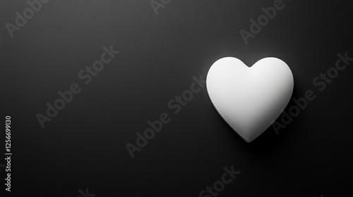 White Heart Shape on Dark Background for Love, Romance, Valentine's Day or Minimalist Decor Concept