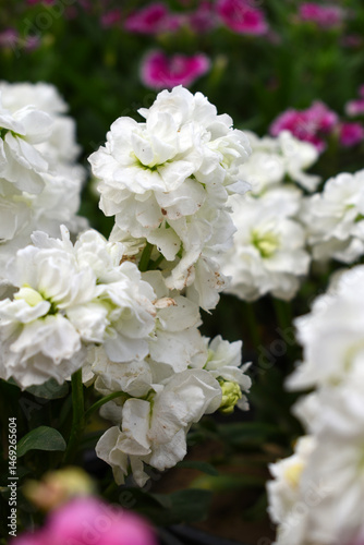 White Hoary Stock, White Hoary Stock or Matthiola Incana is a member of the Brassicaceae family of flowering plants. It's also commonly known as Brompton Stock, Common Stock, White flower in garden
