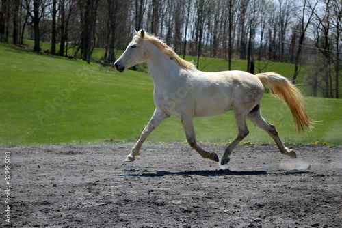 white horse trotting