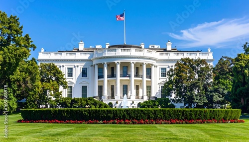 White house exterior view on sunny day