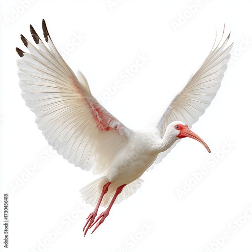 White Ibis in flight isolated, white background cut out png