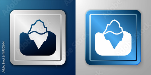 White Iceberg icon isolated on blue and grey background. Silver and blue square button. Vector