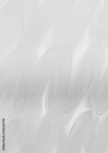 White ink and watercolor texture on white paper background. Gradient paint strokes and decalcomania effect. Hand-painted gouache abstract image. Mess on the canvas.