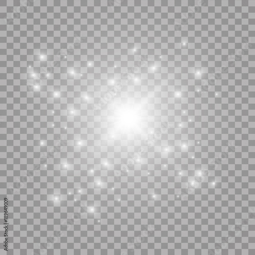 White iridescent light effect star design. Shiny transparent rays vector background. Bright transparent glowing sparkling star