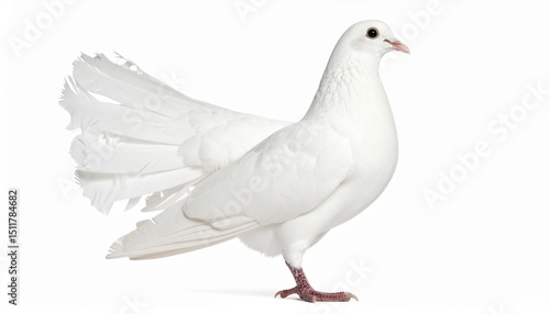 White jacobin pigeon standing isolated on white background