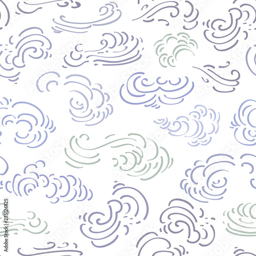 White japan inspired vector pattern with grey clouds or waves. Surface pattern design.