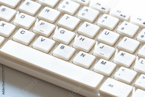 White keyboard for computer. Close-up. Background for design on the topic of information technology.