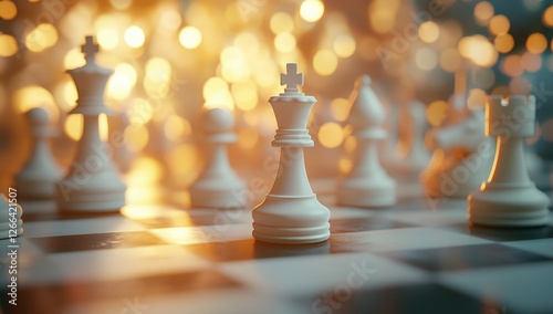 White king chess piece, strategic game, bokeh background, competition