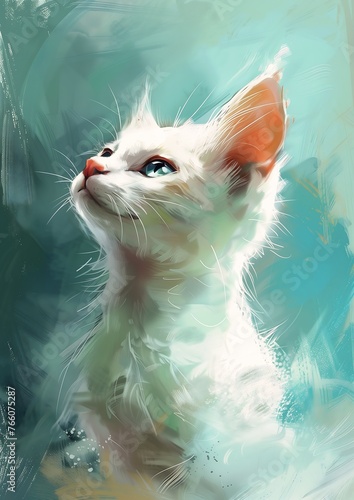 white kitty cat kitten looking something sky face light cyan expressive portrait elf meow cute dog