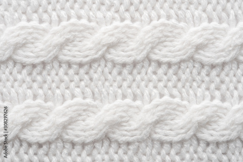 White Knit Fabric Background. Wool Sweater Texture Close Up