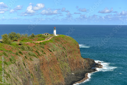White Lighthouse and Blue Sea - Kilauea Lighthouse against blue ocean and blue sky, Kauai, Hawaii, USA