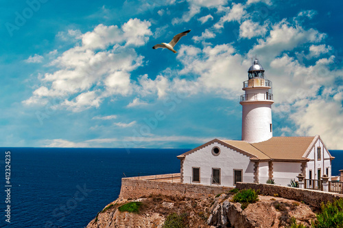 White lighthouse at Cala Ratjada, Majorca, Spain