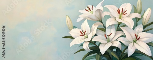 White lilies in full bloom, artistic brushstrokes, soft petals, watercolor style