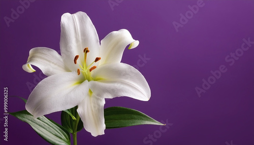 White lily flower isolated on purple background