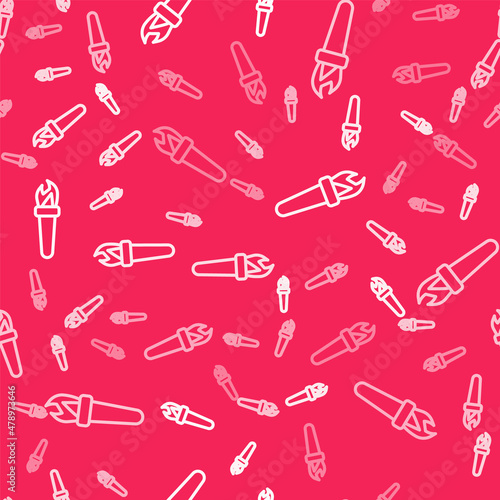 White line Torch flame icon isolated seamless pattern on red background. Symbol fire hot, flame power, flaming and heat. Vector