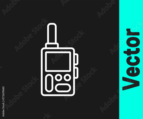 White line Walkie talkie icon isolated on black background. Portable radio transmitter icon. Radio transceiver sign. Vector.