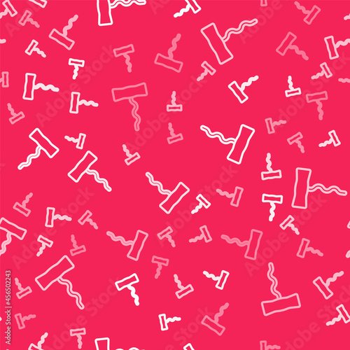 White line Wine corkscrew icon isolated seamless pattern on red background. Vector