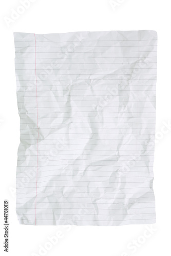 White lines crumpled paper isolated on white background. Image with Clipping path