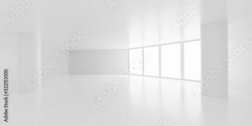white loft style room with window and concrete floor, architecture mock up, 3d render illustration with empty space for your content