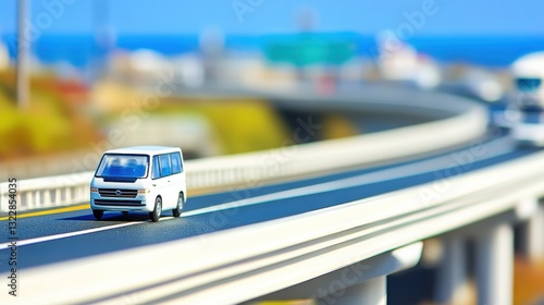 White Miniature Van on Coastal Highway