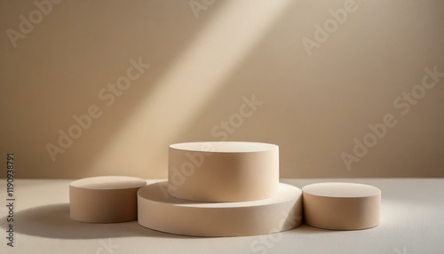White minimal pedestal podium, white background for cosmetic product presentation, 3d rendering beige illustration.