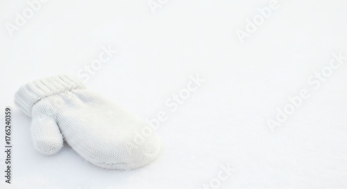 White mitten on snow background