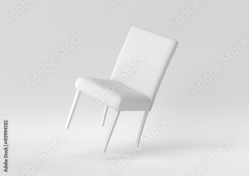 white modern chair floating on white background. minimal concept idea. monochrome. 3d render.
