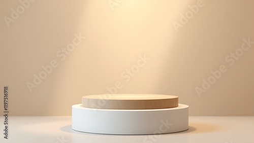 White modern wood podium 3d background with empty product display stage minimal showcase platform mockup stand or luxury cosmetic advertising banner natural wooden shelf backdrop presentation studio.