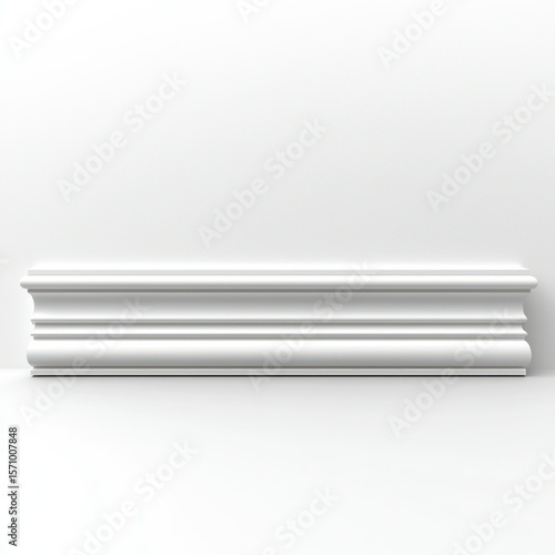 White molding detail against white wall and floor