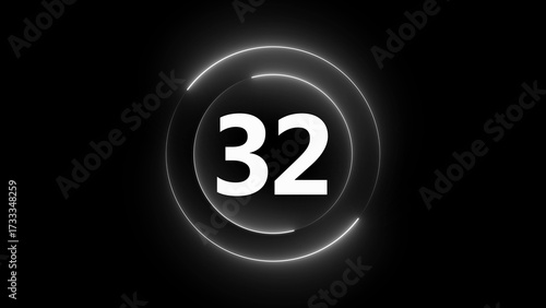 White Neon Circle With Number 32 On Black Background numeral count