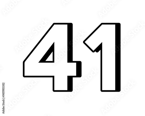 White number 41 on transparent background, with a bold, 3D appearance and shadow effects for added depth and dimension design elements