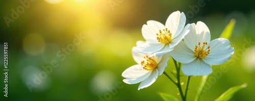 White Oldenlandia capitellata blossoms in sunlight, morning light, oldenlandia, blooming flowers
