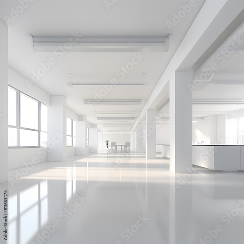 White open space office interior. Generative AI.