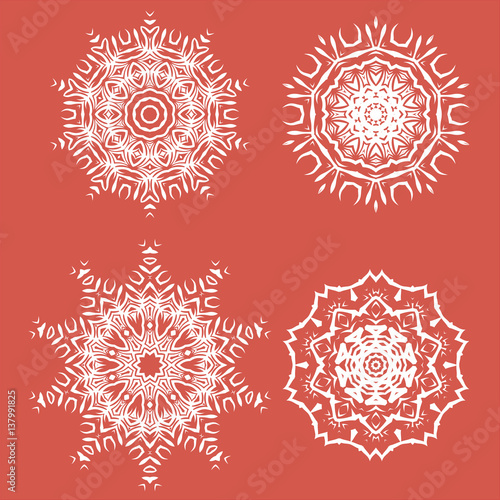 White Ornamental Rosettes. Endless Texture. Oriental Geometric Ornament