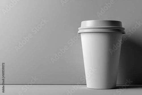 White paper cup stands on gray surface highlighting simple design and minimalism
