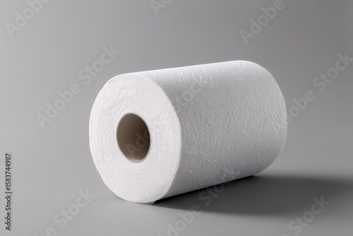 White paper towel roll on a neutral gray background providing a minimalistic and clean appearance