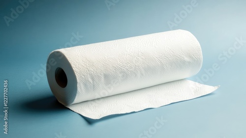 White paper towel roll on a solid color backdrop showcasing texture and versatility for cleaning and household use