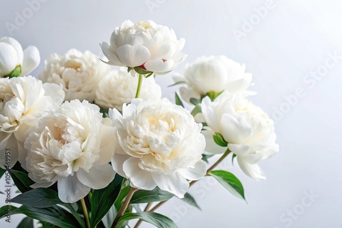 White peony flower in medium shot with blooming background, nature