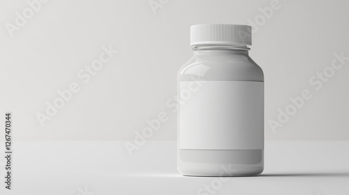 white plastic bottle with a blank label on white background . for pharmaceutical products , medicines