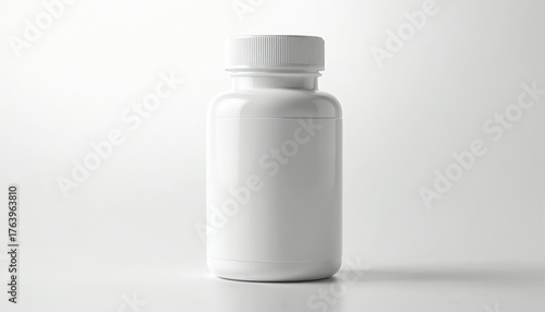 White plastic medicine bottle with secure screw cap. Smooth minimalist surface, sleek design for healthcare packaging. Isolated on transparent background for pharma, supplement, vitamin, medication.