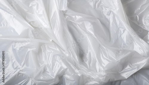 White plastic or polyethylene bag texture, Transparant wrinkled plastic, macro, white background